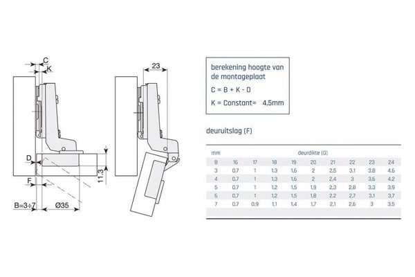 De mesuco x is een ideaal scharnier voor projecten en in enkele uitvoeringen beschikbaar. Dit scharnier is bedoeld voor kasten met inliggende deur en heeft de volgende eigenschappen: