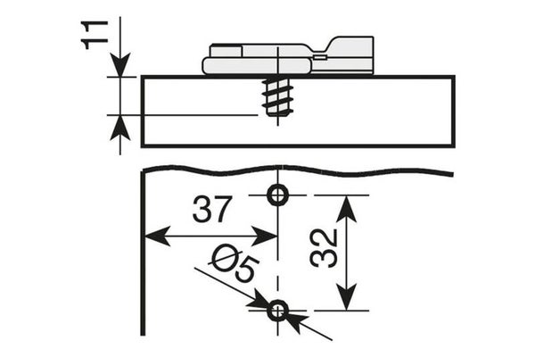 Deze montageplaten zijn erg eenvoudig met de voorgemonteerde euroschroeven op de zijwand van een kast te bevestigen. Hierop wordt de Mesuco X rapid scharnier met een openingshoek van 110° of 165° graden geklikt.