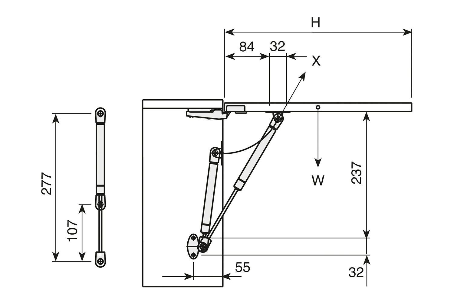 Deze gasveer is ontworpen voor kleppen of deuren die omhoog openen. De maximale drukkracht bedraagt 12 kg.