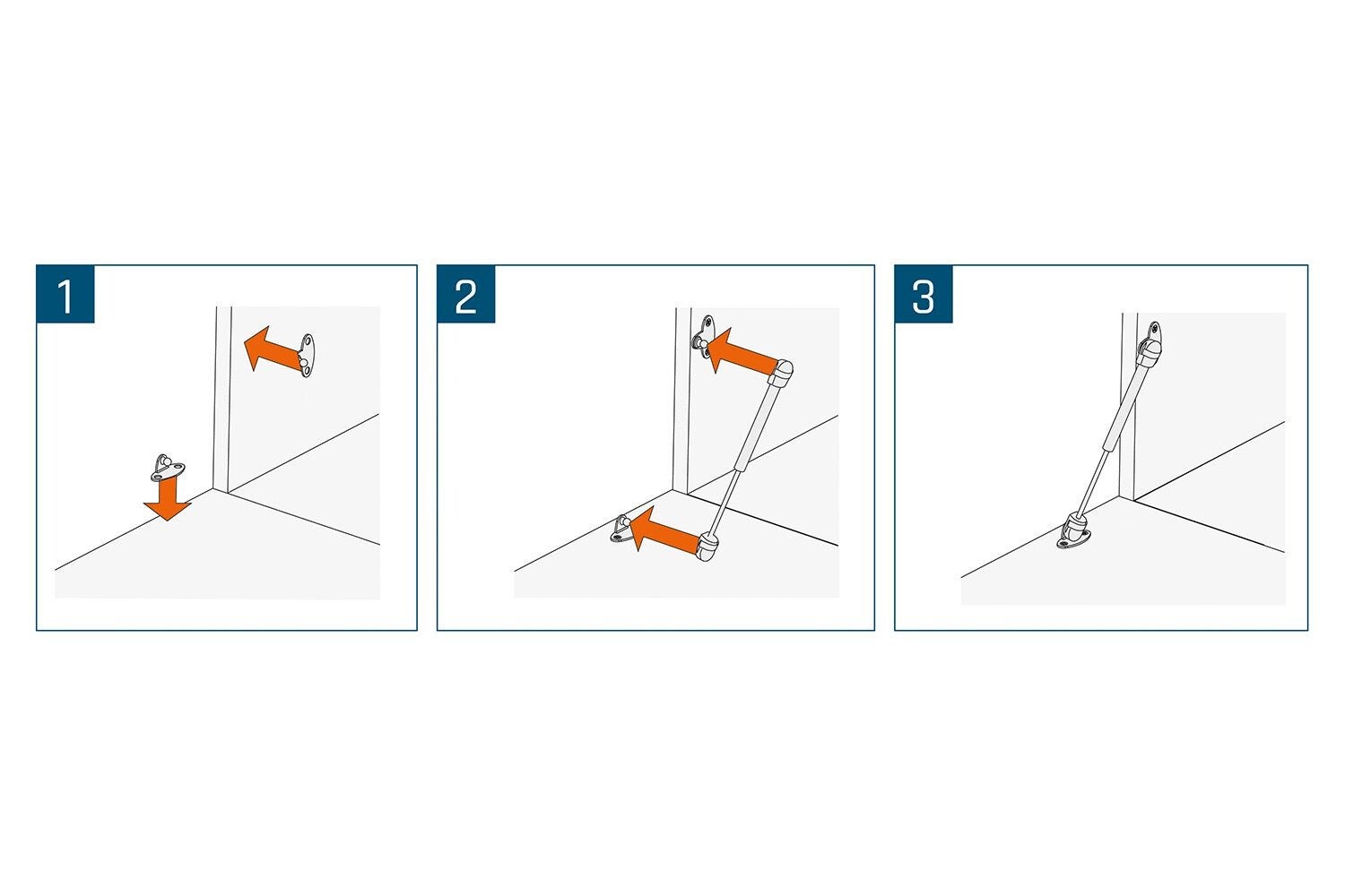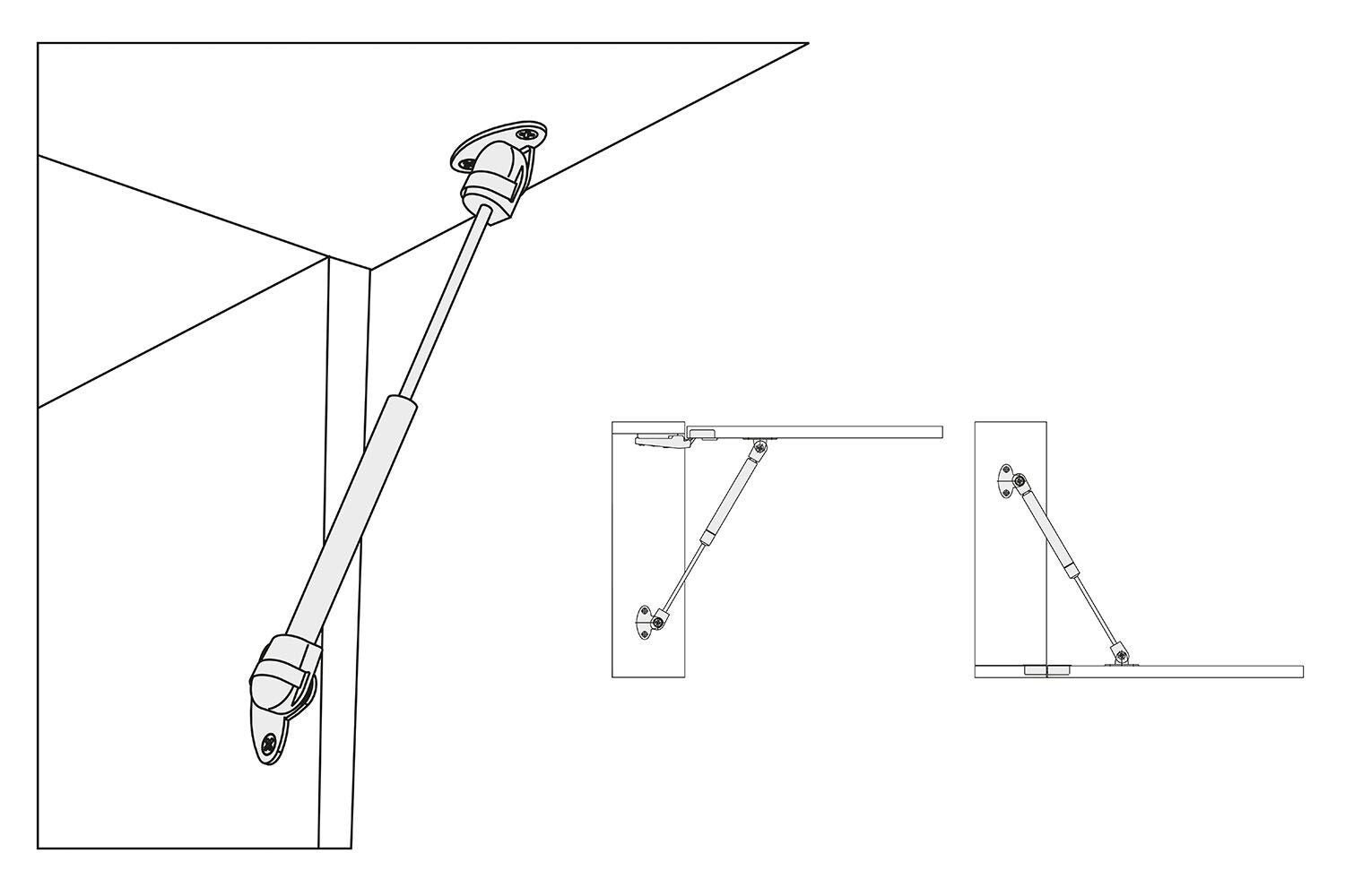 De gasveer is geschikt voor deuren die in geopende positie een hoek van 90 graden vormen met de kast. Raadpleeg de productafbeeldingen voor de bijbehorende montage-instructies.