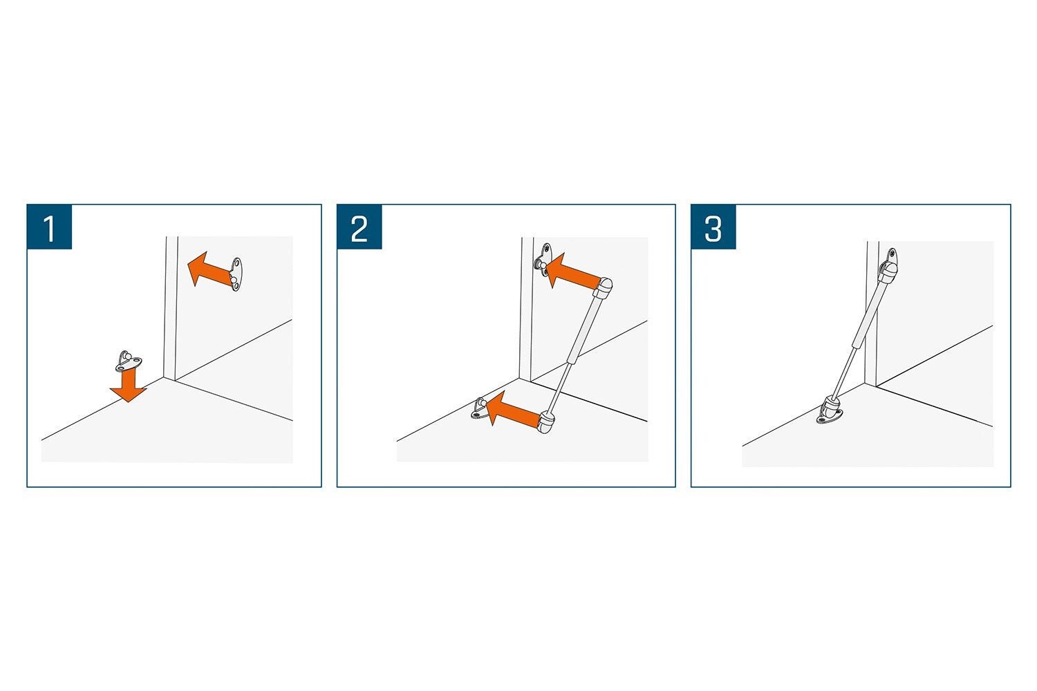 Deze Gasveer Demper is specifiek ontworpen voor kleppen of deuren die omlaag openen. De demper zorgt voor een rustige en gecontroleerde beweging, waardoor de klep niet openvalt maar gedempt neerkomt.