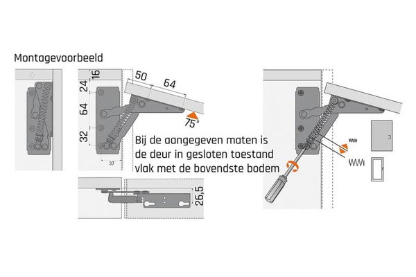 Klepliftbeslag set - 75°