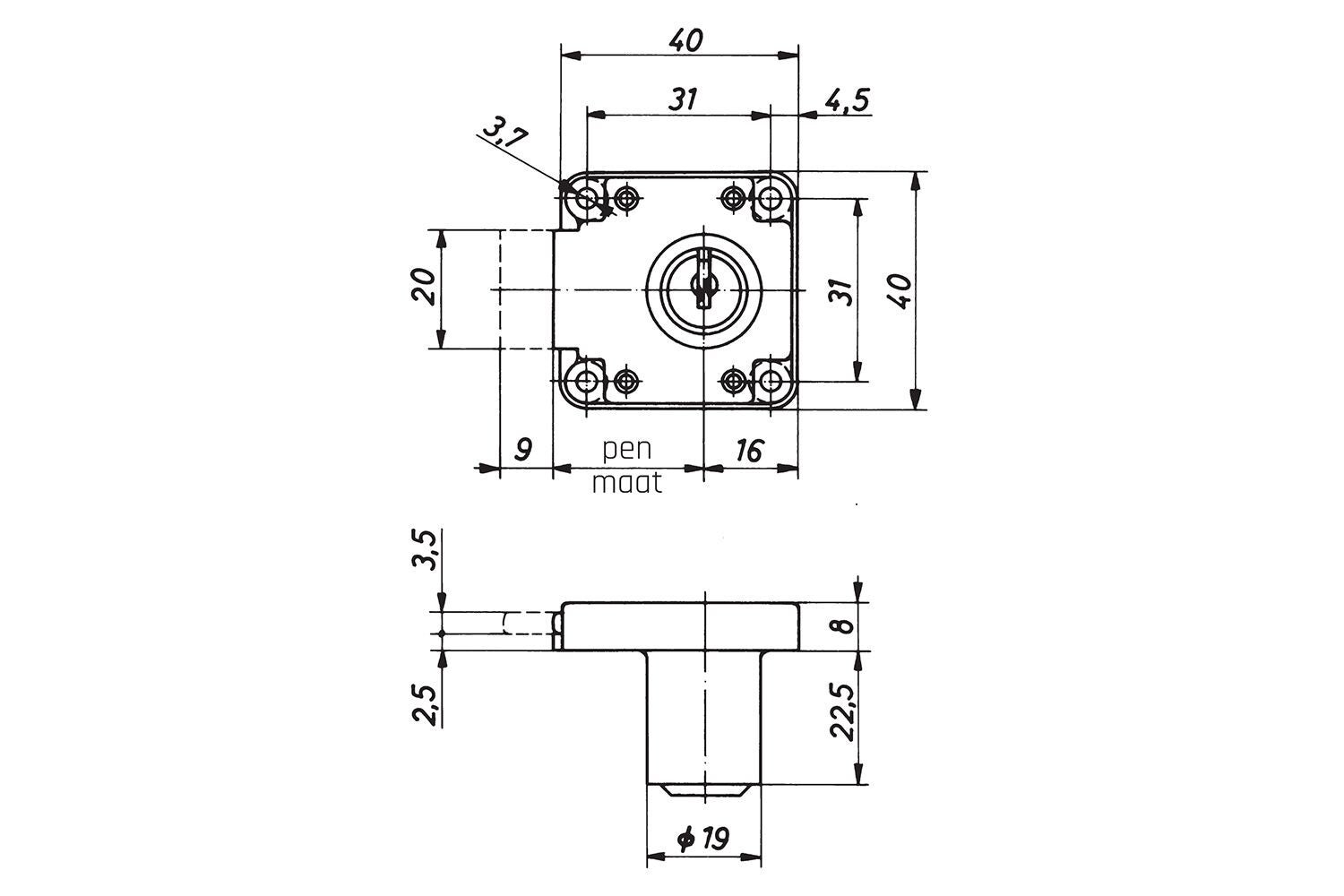 Achter-oplegslot - links - voor deuren - penmaat: 25mm - zamak - vernikkeld (excl. inzetcilinder)