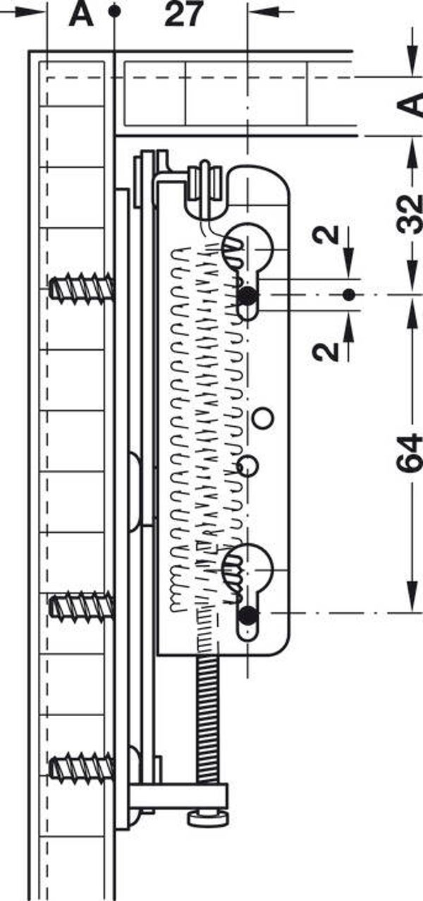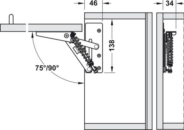 Klepbeslag, voor eendelige kleppen van hout of met breed aluminium kader. Kunststofcoating wit, aanslag: links