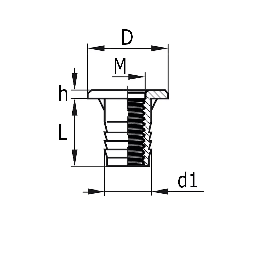 Deze robuuste geribbelde inslagmoer M8 van staal is de ideale oplossing voor het creëren van een sterke, herbruikbare schroefdraad in zachte materialen. De moer is voorzien van een kraag voor een nette en sterke afwerking.