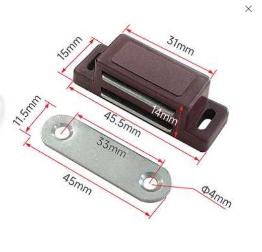 Magneetsnapper met tegenplaat bruin 45x15mm