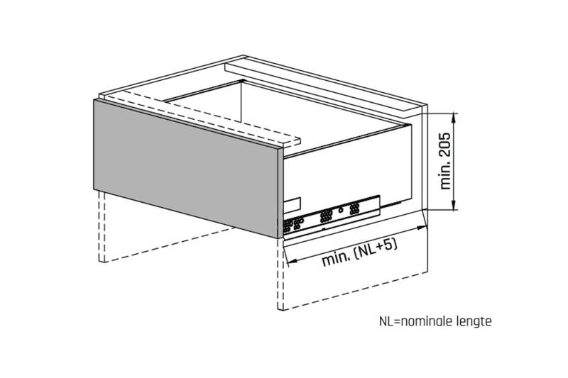 - Minimale inbouwhoogte: 205mm