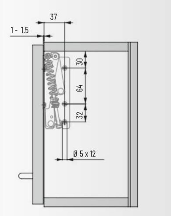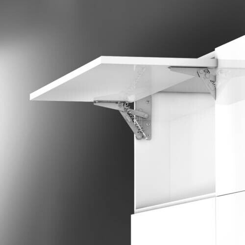 Het klepdeurbeslag T-57 is eenvoudig te monteren en biedt een openingshoek, die ingesteld kan worden op 75° of 90°. Breedte: tot 1200 mm. De opdek is variabel.