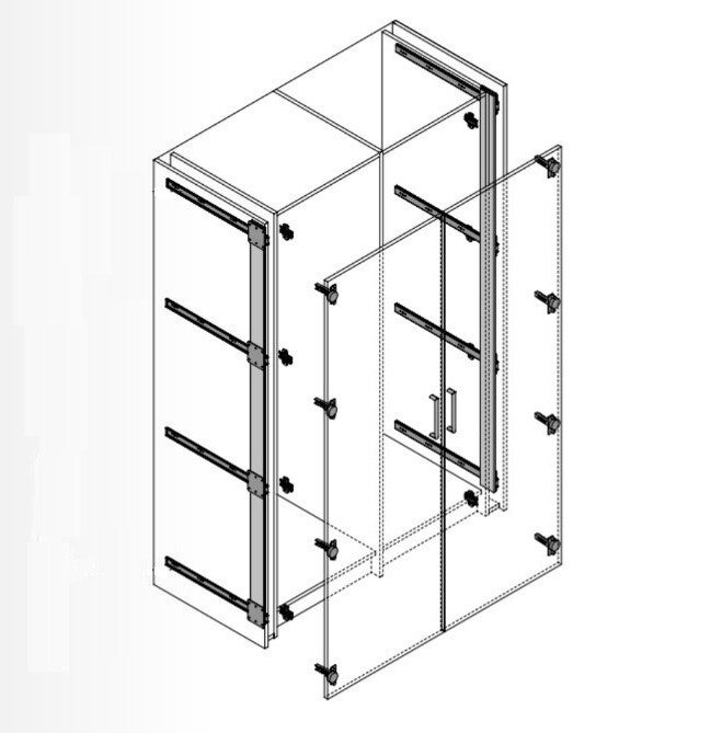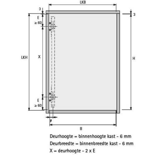 Het aantal geleiders per deur is afhankelijk van de deur hoogte. Zie tekening. De minimale deurhoogte is 60cm. De maximale deurhoogte is 180cm.