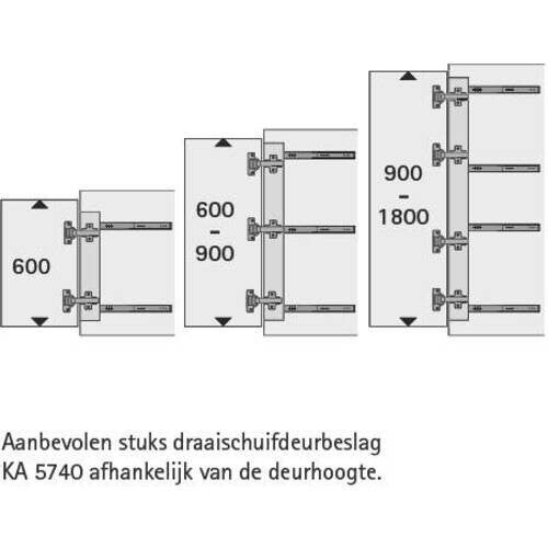 - 2 kogelgeleiders KA 5740 voor 1 draaideur