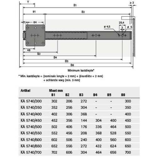 Deurset met 2 kogelgeleiders Hettich KA 5740, deurbreedte ≤ 300 mm