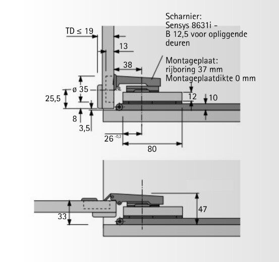 Scharnieren en andere toebehoren apart bestellen.
