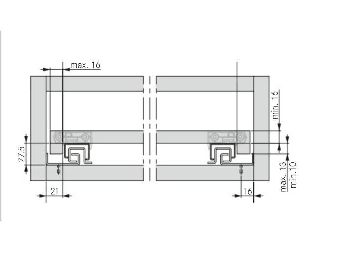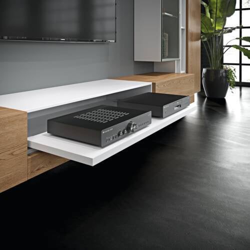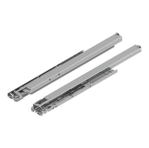 Volledig uittrekbare ladegeleider met bodemmontage voor extra brede lades en uittrekplateaus.