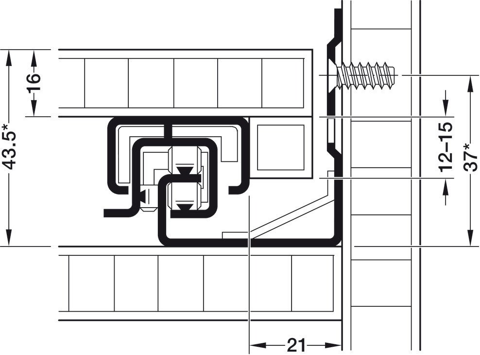 Blum Tandem met Tip-On geïntegreerd - volledig uittrekbaar 30kg - 25cm