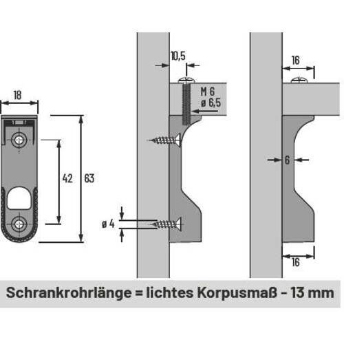 Stabiele kastbuisdrager om aan te schroeven, om onder de legplank te schroeven.