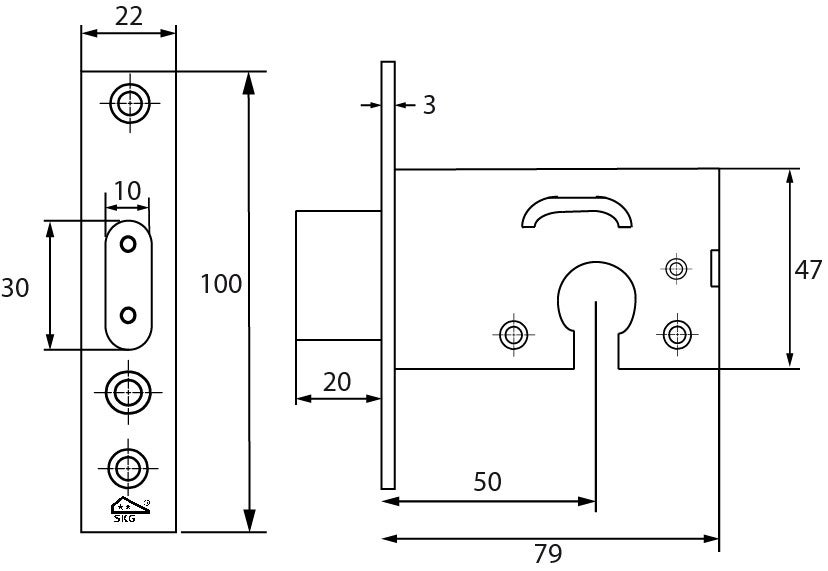 Insteekslot PC SKG**® vierkante hoeken met sluitplaat