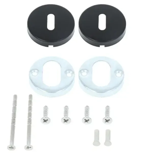 Deze ronde, mat zwarte RVS sleutelplaatjes zorgen voor een naadloze en moderne uitstraling rondom het sleutelgat.