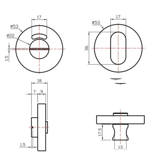Toilet-garnituur rvs rond (rood/wit) - per set - Serie TS5