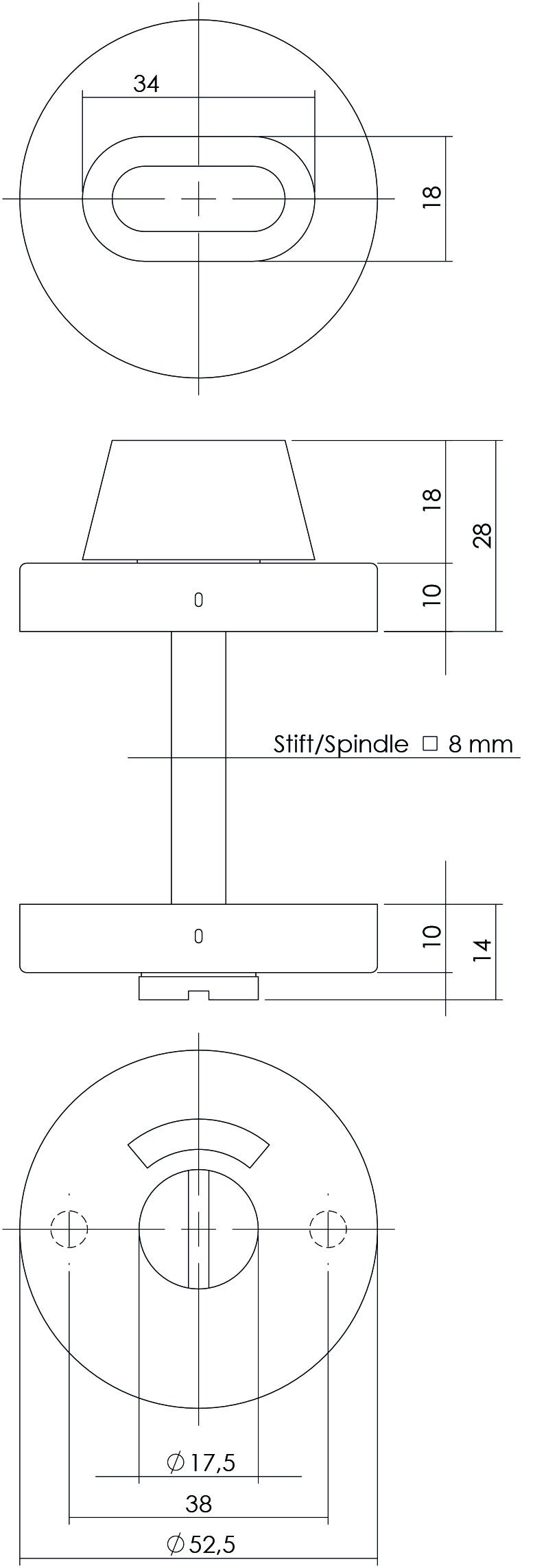 Rozet toilet-/badkamersluiting rond verdekt rvs geborsteld 8 mm